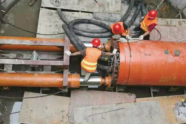 湖南頂管機(jī)千斤頂施工現(xiàn)場